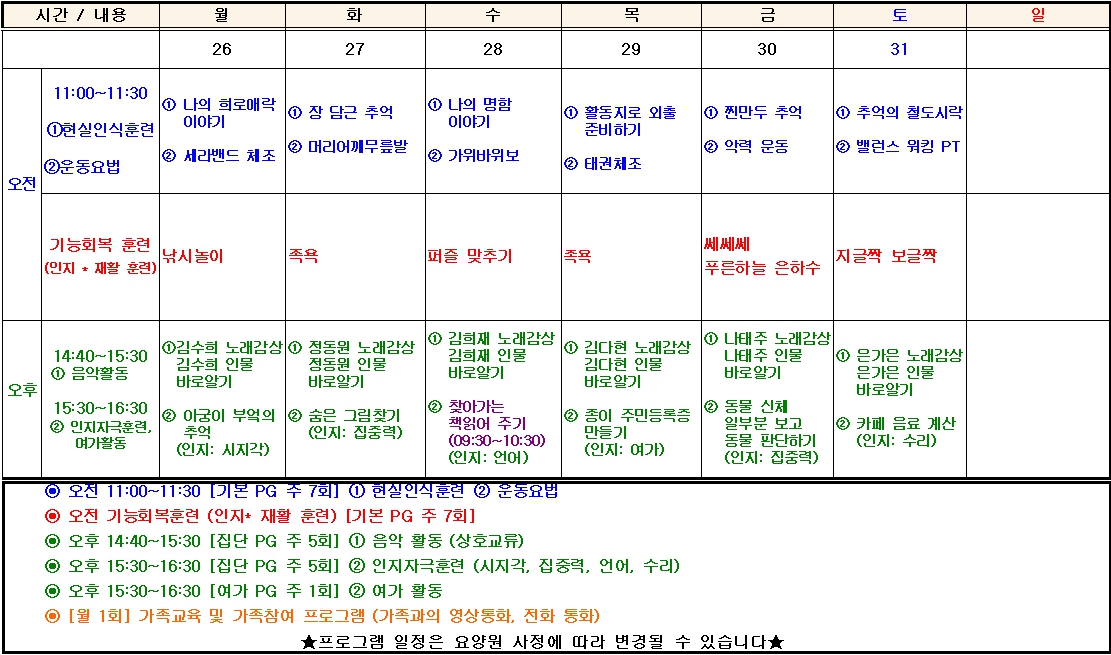 HOME > 주요업무 > 치매전담실 프로그램