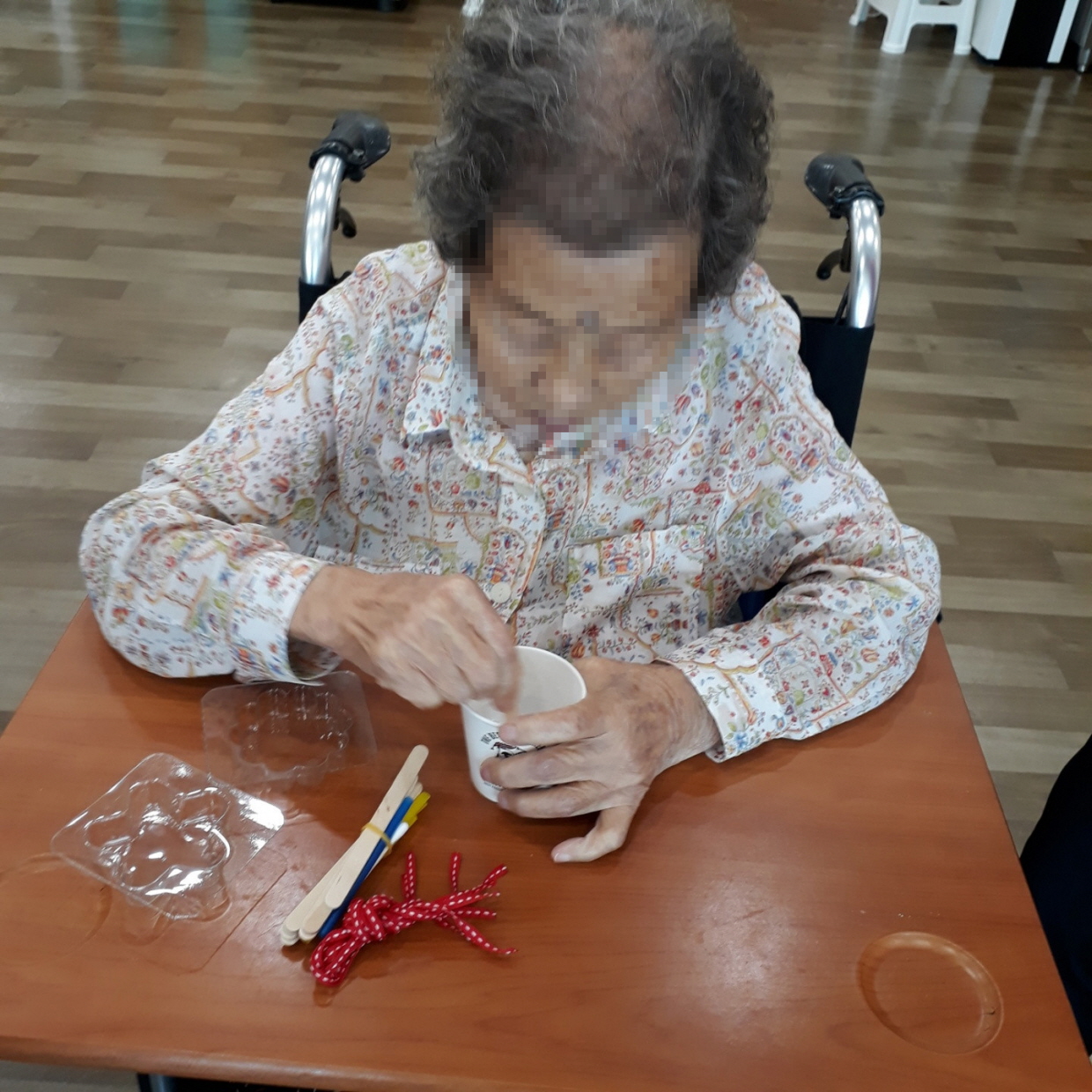아로마 향기에 과자인 줄 아시고 드시려고 하는 어르신들도 계셨지만 새로운 활동에 흥미를 보이며 참여하였습니다.
