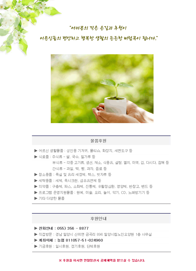 HOME > 후원 및 자원봉사 > 후원안내