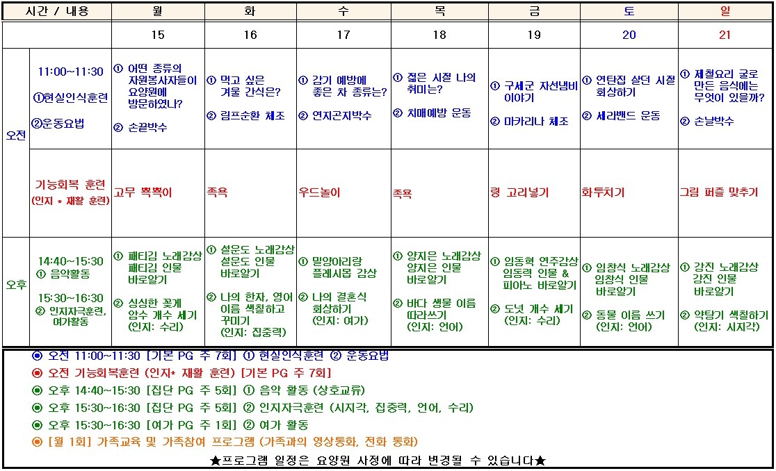 HOME > 주요업무 > 치매전담실 프로그램